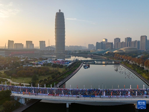 会场网讯:“郑州银行杯”2025郑州马拉松在郑州如意湖畔激情开跑。来自全国各地的跑者汇聚于全长42.195公里的赛道,在激烈角逐中挥洒汗水、挑战自我,2.5万人共同用脚步丈量这座拥有3600年悠久历史、城址不移、文脉绵延的城市。 赛事以'跑步寻根'为主题,推出融合商都文脉的姓氏奖牌、豫剧展演与中原风味的'郑马好市'市集,通过'赛事+文旅'模式展现城市文化魅力。